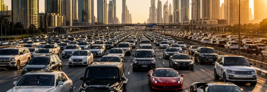 The arithmetic of Dubai’s traffic is not complicated. It is simply uncomfortable. The city has 3.8 million residents and 4.3 million registered vehicles. That ratio, more cars than people, is not a metaphor. It is the measurement of a city that decided, for twenty years, that the correct response to growth was to add lanes. Registered vehicles grew 8.7 percent year on year in 2024. The roads did not grow 8.7 percent. The gap between those two figures is called rush hour, and in Dubai, rush hour is not an event. It is a condition. It begins at 7am, recedes briefly at 10am, reconvenes at 4pm, and does not fully end. It simply pauses overnight, gathering itself, preparing for the morning.